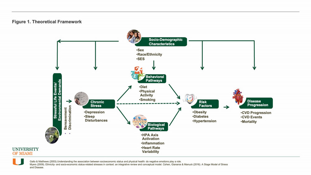 Our conceptual framework draws on theoretical models from behavioral science, psychoneuroimmunology, and physiology. In particular, the Reserve Capacity Model, the Lifespan Biopsychosocial Model of Cumulative Vulnerability and Minority Health, and the Stage Model of Stress and Disease inform our understanding of how psychosocial and contextual stressors influence cardiovascular health.